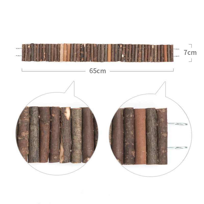 Create a more natural and enriching habitat for your small pet with this flexible wooden bridge. Made from smooth wood pieces connected with flexible metal wires, it can be bent and shaped in different ways to suit your cage setup. Use it as a bridge, ramp, hideout cover, tunnel shape, or divider to add variety and support your pet’s natural climbing and exploring instincts. Its natural look blends beautifully into woodland-style habitats, making it both a practical and decorative accessory for hamsters and other small pets.